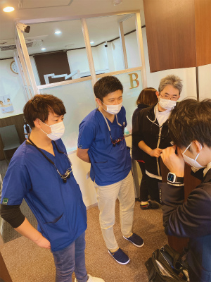 DRは、マイクロスコープの使用や適した症例について、また来月導入される最新の歯科医療機器についての打ち合わせなど。